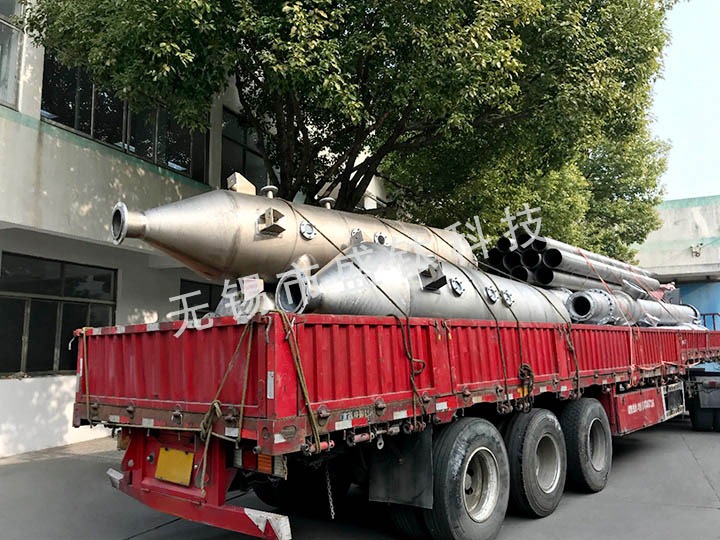 鈦材質的殼體兩端分別設置有鈦材質的底蓋與頂蓋,底蓋與頂蓋的內壁均設置有一層鈦材質的加強板,底蓋與頂蓋分別對應設置有排液口及排氣口。殼體內部由上至下依次設置有鈦絲網除沫器及至少兩層平行設置的篩板,鈦絲網除沫器與上層的所述篩板之間設置有進液口。篩板的數量為5層,5層篩板的中心溢流孔的孔徑由上至下依次減小。鈦絲網除沫器的上下兩側靠近殼體的部位均設置有一圈鈦材質的絲網加強板。